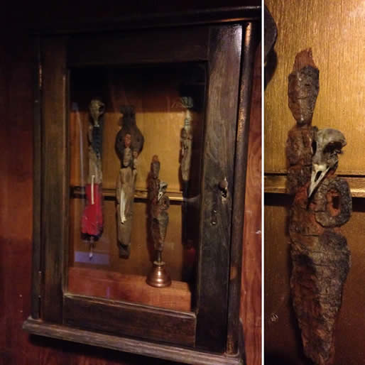 I making a few larger complex ones for an upcoming show, ODE to Earth. This one has four bony, toothy ones in a cabinet. One has a Bird's Skull face