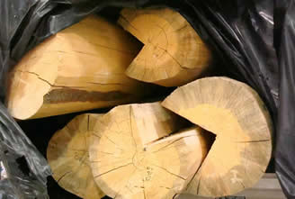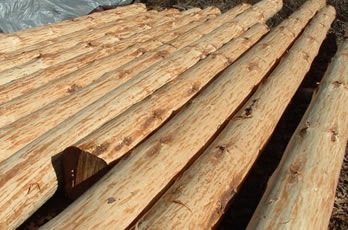 Procedure: locate/buy, harvest/trim up, handle/deliver, size, hand peel, mill to 3/4 round, handle/deliver