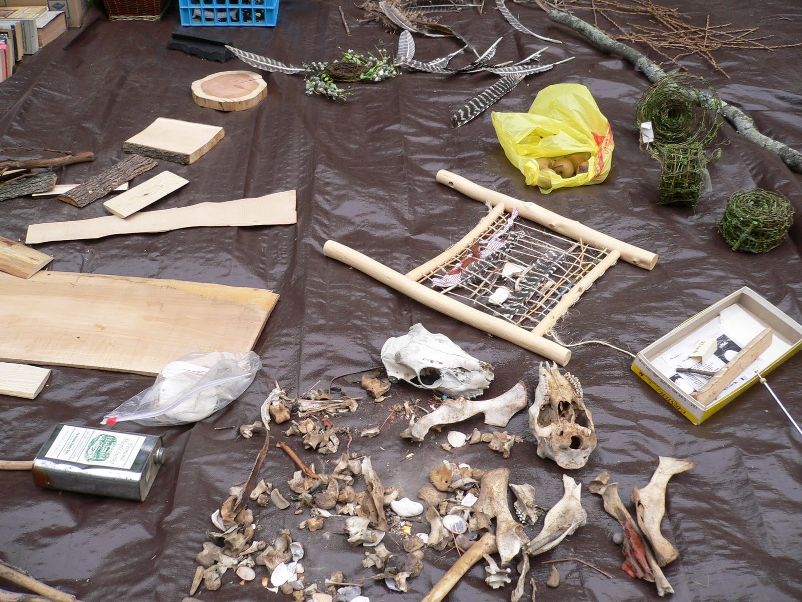 Others showed us how to make Maori healing tools and systrums (an ancient egyptian rattle form). Dan’s driftwood was on hand with small carving knives, as were boxes of blank cards and Stanley tool boxes full of small nature finds from which one could begin to make personal Tarot.
