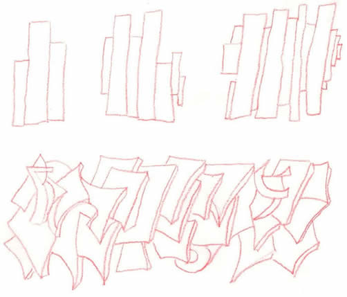 After 20 minutes he had done two related drawings. Here's one with the "reading" he did: